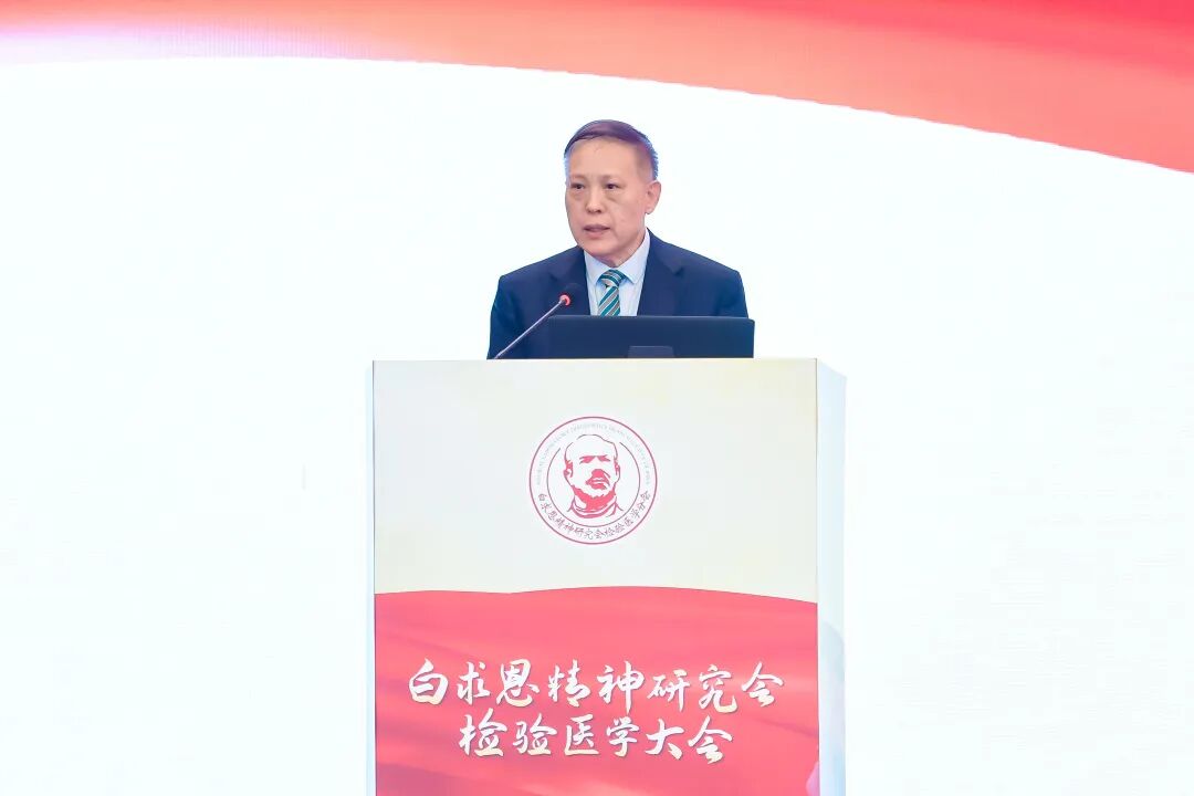 会上,“疫情防控检测能力提升”公益项目也正式启动,该项目旨在解决疫情防控过程中面临的基层防控检测技术落后、信息系统落后、多对象检测速度和检测数量无法兼具等诸多痛点与难点。白求恩精神研究会检验医学分会授予卡尤迪、济南百博生物、热景生物等6家企业2022年度“疫情防控检测能力提升公益项目爱心企业”称号,与企业携手一道为疫情防控增添力量。 16日晚,白求恩精神研究会检验医学分会召开了第四届理事扩大会议,董书魁会长针对2021-2022年工作回顾及下半年工作计划做了详实汇报。同时李健副会长宣布了白求恩精神研究会检验医学分会的增补名单,程训民等6人被增补为检验医学分会副会长,增补常务副秘书长1人,副秘书长2人,常务理事35人,理事59人。张云林副秘书长宣读发布了检验医学分会未来五年规划纲要,明确分会未来发展方向和目标。 17日8点30分,本次会议开幕式盛大开启,由白求恩精神研究会检验医学分会副会长兼秘书长李健担任主持人。白求恩精神研究会检验医学分会会长董书魁教授宣布“2022白求恩精神研究会检验医学理事大会”正式开幕,并确定了本次大会的主题为“传承红色基因,弘扬白求恩精神,做新时代检验人”。白求恩精神研究会常务副会长兼秘书长蔡国军教授代表白求恩精神研究会对此次大会的顺利举办表示热烈的祝贺。同时也对近年来检验医学分会对行业发展做出的积极贡献给与了充分肯定和高度评价。 随后,大会进入学术分享阶段。上海交通大学医学院附属精神卫生中心检验科主任林萍教授,白求恩精神研究会检验医学分会副会长、西北大学附属第一医院检验科主任赵雅教授,山东大学齐鲁医院检验医学中心主任张义教授担任学术报告环节的主持人。 第一位与大家进行学术分享的是来自深圳市第三人民医院的院长卢洪洲院士。讲题为《新冠疫情防控与中国公卫体系建设》。 卢院士表示,新冠病程是病毒复制和宿主反应的双相作用,并且感染新冠的绝大部分患者症状较轻,但排毒时间长,不利于迅速恢复社会生活。而老年人因适应性免疫应答不足,重症及死亡风险更高,感染后更应尽早干预治疗。此外,卢院士经研究还发现新冠患者痊愈后T细胞免疫保护将会持续下去。当今疫情传播面临的主要问题是病毒突变速度太快,因此基于突变株的通用型疫苗的研发工作尤为迫切。而在通用型疫苗出现之前,疫情防控仍需要坚决落实。病毒变异速度快,欧美国家的群体免疫政策无法应对变异之后的病毒,痊愈后体内产生的抗体不能保证对变异病毒的免疫。 接下来,中国科技信息研究所的张秀梅教授带来了题为《数据驱动的检验医学产学研协同创新思考与实践》的报告。张教授表示,构建数字健康战略是创新发展的大势所趋。而近年来检验医学行业也在快速发展着。临床诊疗对于检验的依赖度越来越高、人们对于疾病预防的重视也促进了行业发展、健康管理中心成为第三方检验的重要业务来源。因此检验医学行业未来的发展方向是走向自动化、现场快速检测化,这就需要我们去建设高效率的全自动检验实验室。这种实验室的特征体现在:单模块形式自动化、工作站形式自动化、流水线形式自动化、机器人形式智能化。 接着,军事医学研究院生物工程研究所研究员钟辉教授为我们带来了《新冠感染与糖脂代谢》的报告。钟教授表示觉得病毒“威力”的主要因素在于:病毒感染人体能力、病毒细胞内增殖能力、病毒导致机体紊乱的能力。病毒感染将有可能导致宿主的代谢“重写”,而具体到新冠病毒上,体现为新冠病毒S蛋白能够结合HDL。因此,使用辅助受体干扰病毒成为可能。辅助受体SR-B1的发现为新冠病毒的治疗提供了新的靶点。 随后,北京大学肝病研究所的鲁凤民教授带来了题为《高尔基体蛋白73(GP73)临床应用研究新进展》的报告。高尔基体蛋白73(GP73)存在于高尔基体上,是一种跨膜糖蛋白,正常生理情况下,人体肝细胞中几乎不表达GP73,而在胆管上皮细胞、支气管纤毛柱状上皮细胞等部位以低水平持续表达。GP73属于肿瘤标志物的一种,可用于肝癌诊断,但GP73这一项偏高并不能说明一定患有肝癌。因不同病因所致反复或持续肝损伤会导致肝脏炎症及纤维化的形成。而在这之中慢性HBV感染及非酒精性脂肪肝及相关慢性肝病严重危害国人健康。当下,我国除了亟需发现慢性HBV感染者外,扩大抗病毒治疗也是势在必行。而鲁教授团队经过研究发现,GP73可作为不同病因肝纤维化/肝硬化的血清学诊断指标。而血清GP73检测可作为可反复使用的、无创的评估中度及以上肝损伤的手段。 接下来,美国微生物学院院士汤一苇教授带来了题为《微生物感染的床旁/即时诊和监控》的报告。床旁/即时诊的优势在于可省去大量的周转时间,降低不同科室间的沟通成本,提高得出精准诊断结果效率。现在的新冠核酸检测就用到了很多即时诊的经验。而从患者的角度来说,未来五年将是新医改大踏步深化的五年,新医改的核心是要使城乡居民人人获得基本医疗。以简单的流感来举例,目前普遍情况下,流感患者就医需要做新冠核酸抗体检测、胸片、血常规等等3-5种不同的检测。而这些检测仪器分散在医院的各个角落,这在很大程度上加大了患者的就医难度。床旁/即时诊将大大降低患者的就医成本,为患者提供人性化服