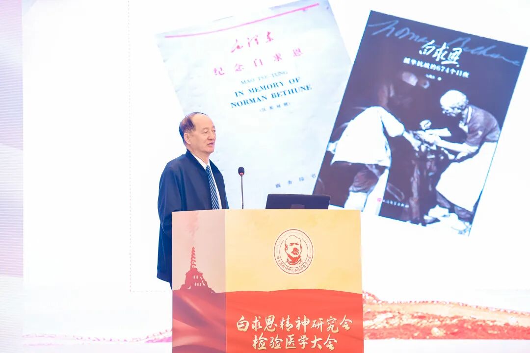18日8点30分,本次大会正式来到了“新时代检验医学人文交流”版块。白求恩精神研究会检验医学分会副会长兼微生物与免疫学组主任委员程训民教授和戚应杰教授担任学术报告环节的主持人。 首先与大家进行分享的是白求恩精神研究会名誉会长马国庆,马国庆会长认为白求恩精神是共产党人精神的体现,是共产党人理想信念的“正气歌”;是支援被压迫民族独立解放的战斗号角;是无私利人、牺牲奉献的真实写照;是人道精神与科学精神的高度融合;是激励后人不懈奋进的时代灯塔。在当今时代,白求恩精神对我们的时代价值观的构建具有重大影响,他的理想主义、英雄主义、人道主义与科学精神有着非常重要的现实意义。 随后带来分享的是白求恩精神研究会常务副会长郭治中。郭治中副会长结合新时代背景,分析了当前毛泽东卫生思想的新使命。一是认准“六情”、把握大势的使命;二是铸魂至上、党建引领的使命;三是担当有为、谋划发展的使命;四是与时俱进、开拓创新的使命;五是德高医精、率先垂范的使命。 接下来带来分享的是白求恩精神研究会检验医学分会副会长刘杰教授。刘杰教授结合自身实际工作,从国际主义精神、人道主义精神等方面讲述了将医疗事业中清除私立的经历。2006年在利比里亚维和时进行巡诊、救助当地官兵民众,诊治4000余次,免费发放药品千余份,对前来求医的病人始终坚持“不拒诊、不拒治”的原则,积极予以治疗。还讲述了2008年5月至7月,参加抗震救灾医疗队,在汶川地震灾区转战千余里,历经60余次余震、山体滑坡和岩石滚落,深入汶川、都江堰的6个重灾乡镇79个自然村,在野外条件下开展手术200余例,巡诊、救治伤病员4万余人,援助药品器材及各类物资150余万元。 接下来,白求恩精神研究会检验医学分会副会长王缚鲲教授向大家讲述了自己追寻白求恩的心路历程。1935年8月白求恩参加了在列宁格勒举行的国际生理学大会,发现他所推崇的社会化医疗在苏联得到了实现。白求恩说:“我并不关心这种制度叫什么名称,但在苏联那里我看到了期盼已久的东西。” 交流活动的最后,白求恩精神研究会检验医学分会副会长杨晓莉教授为我们讲述了在新时代背景下,要如何弘扬白求恩精神。白求恩精神在党的建设、民族精神建设、社会主义核心价值观建设等方面具有不可替代的作用。他的理想主义、风险精神、工作中精益求精的态度以及他的医者仁心,都是当今时代中,需要我们去继承与弘扬的。 随后,延安大学附属医院的屈晓威教授、山东第一医科大学第一附属医院检验科赵霞教授和检验医学网的总编辑刘杰教授共同宣读了“白求恩式检验人”、“白求恩式检验科”、“爱心公益企业家”、“手拉手帮扶名单”、“白求恩检验人抗疫风采”的获奖名单,并由与会领导为到场的获奖人员颁奖并合影留念。 接下来,白求恩精神研究会检验医学分会副会长兼公共卫生与检验学组主任委员江新泉教授负责会议的主持工作。 白求恩精神研究会名誉会长栗龙池发表了讲话。栗龙池会长总结了自2018年5月成立以来,检验医学分会在董书魁会长和骨干们的带领下,多年来推动的群众行学习白求恩活动自上而下的落实到了科室层面;同时开展宣传“白求恩式检验人”、“白求恩式检验科室”活动,出现了一批过硬的典型;经过开展“手拉手”公益活动,将技术扶贫搞得有声有色,队伍越来越壮大,影响力越来越广泛。 在会议的最后,白求恩精神研究会副会长兼检验医学分会会长董书魁教授发表讲话,总结了此次大会取得的各项成果。在大家的共同努力下,会议完成了各项既定议程,使大家受益匪浅。我们大家应团结一致,努力奋斗,把检验分会发展好、建设好、以优异的成绩庆祝党的二十大胜利召开!最后,2022白求恩精神研究会检验医学大会主会场会议在董书魁教授的宣布中圆满闭幕!